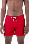 Marin Çapa Desenli Kırmızı Standart Boy Erkek Mayo Deniz ve Havuz Şortu